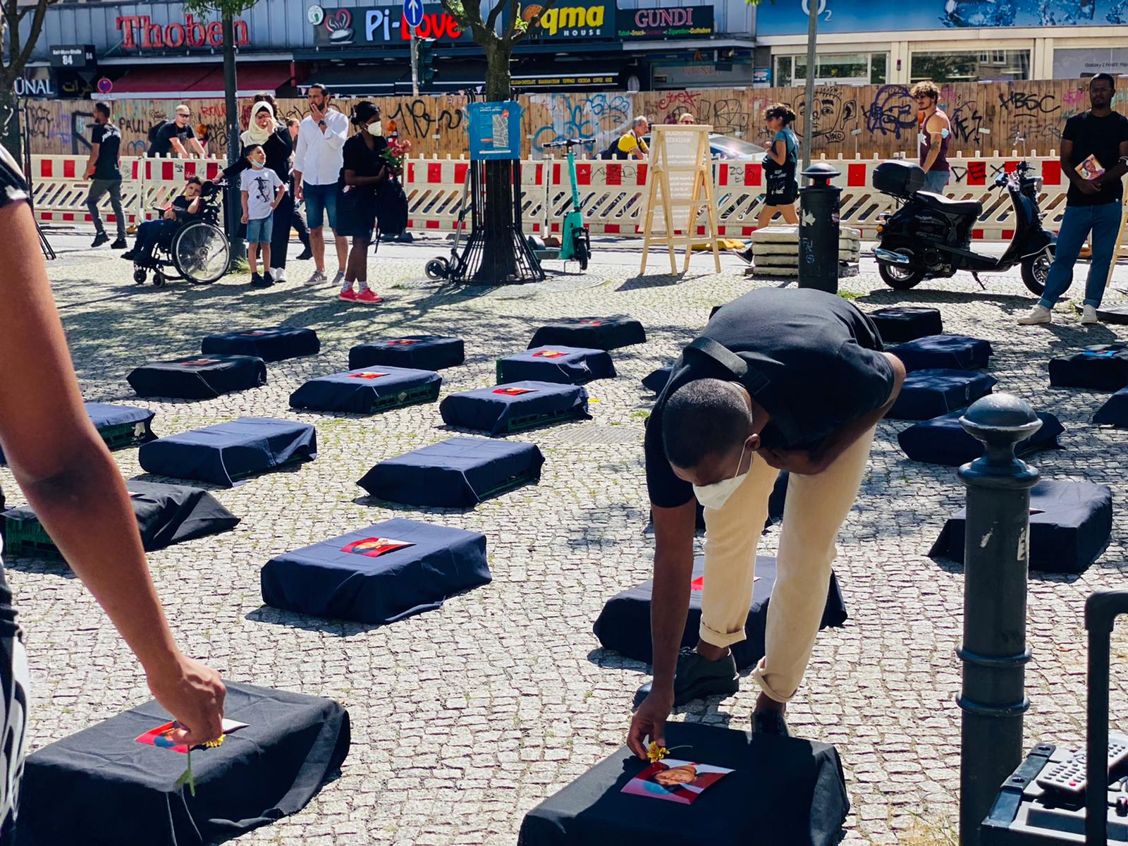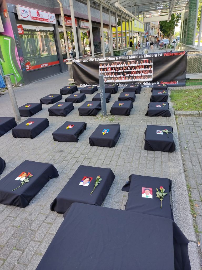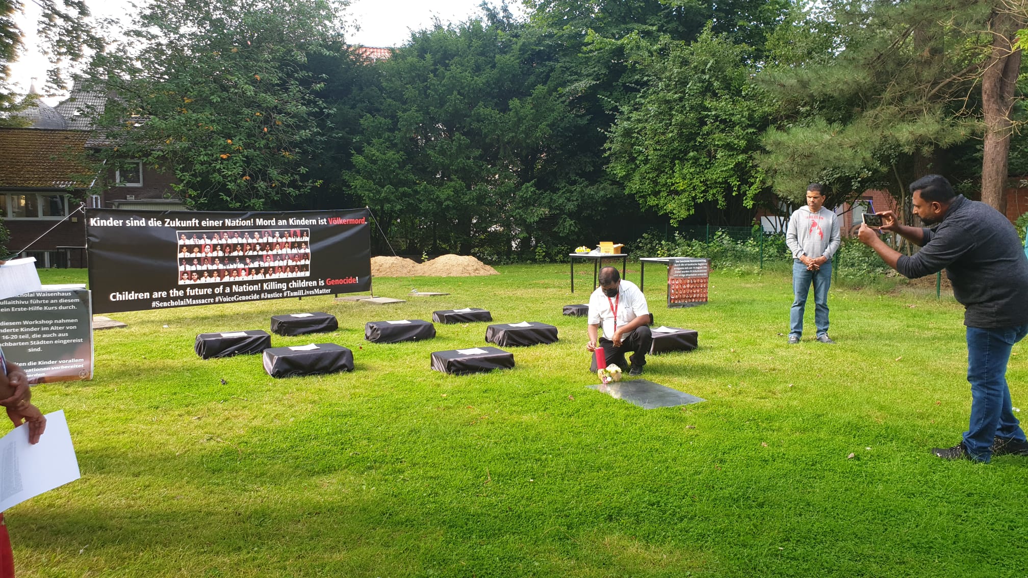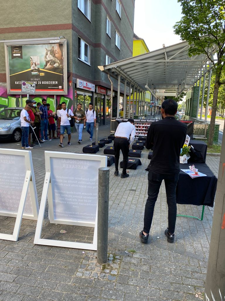 சிங்கள பேரினவாத அரசின் படுகொலையை வெளிப்படுத்தும் முகமாக பதாதையை ஏந்தியவாறு இளையோர்களால் பல்லின மக்களுக்கு யேர்மன் மொழியில் துண்டுப்பிரசுரம் விநியோகிக்கப்பட்டது. அத்தோடு செஞ்சோலை படுகொலையை பற்றிய சிறிய பதிவுகள் யேர்மன் மொழியில் வாசிக்கப்பட்டது.