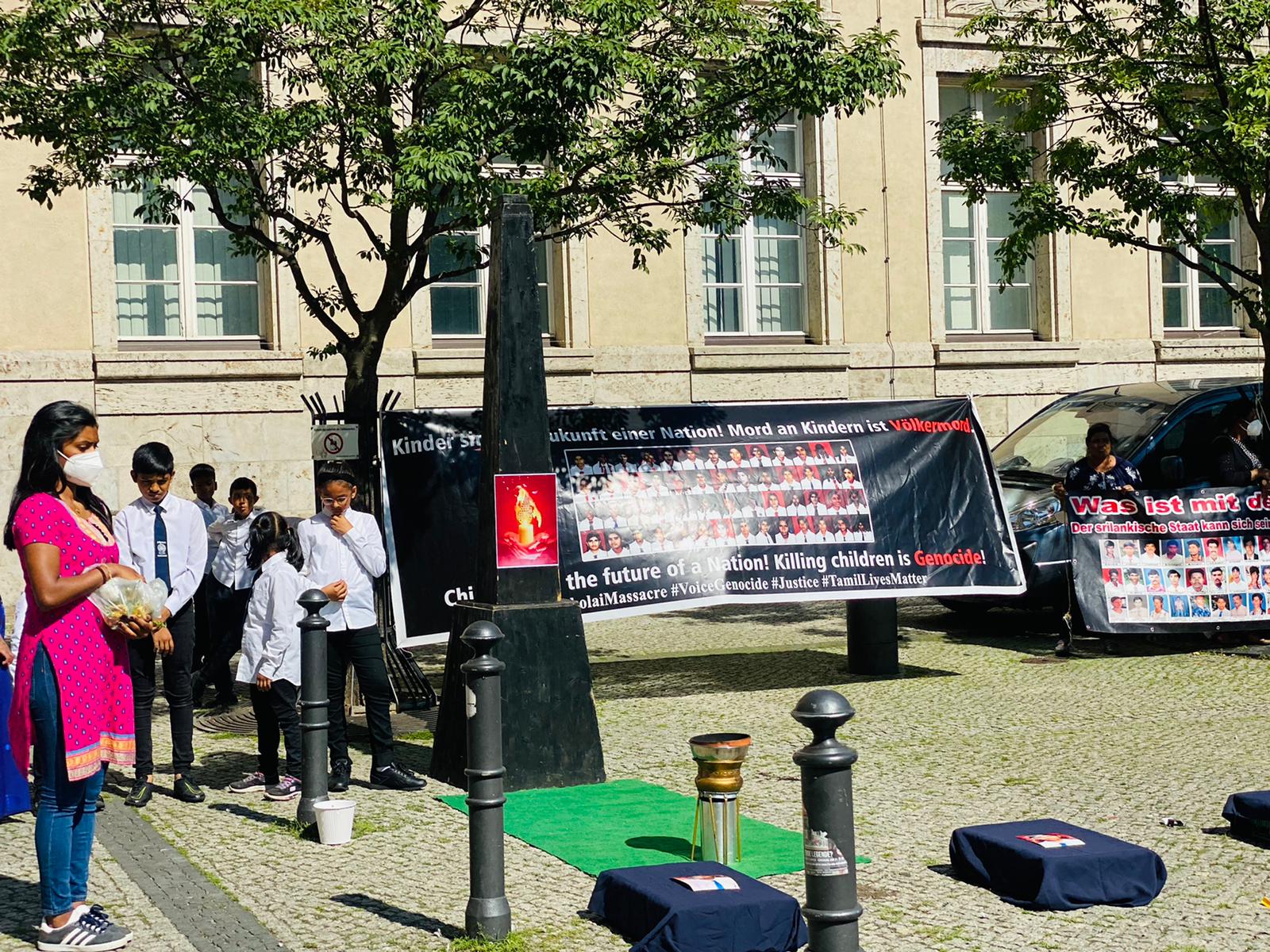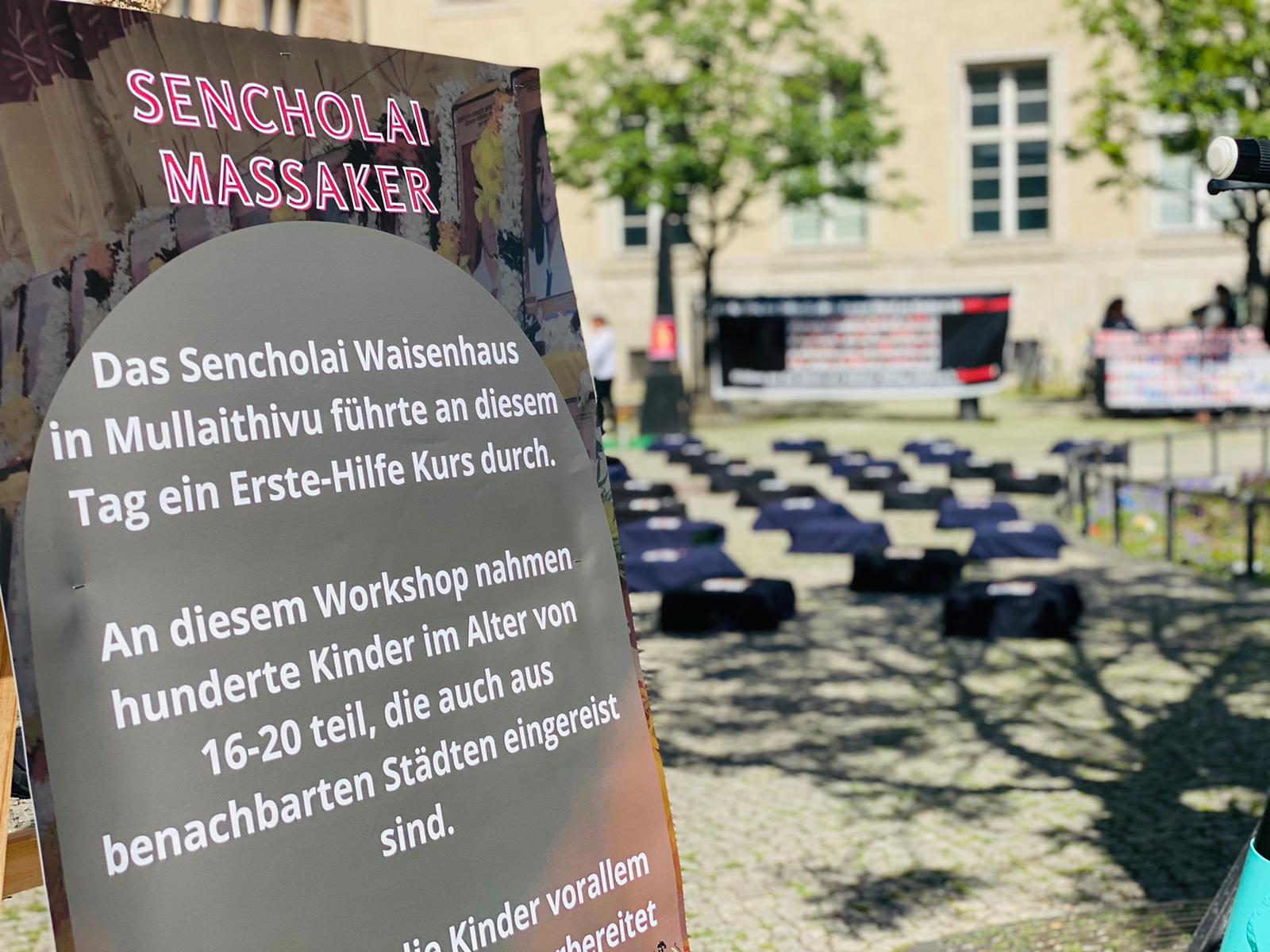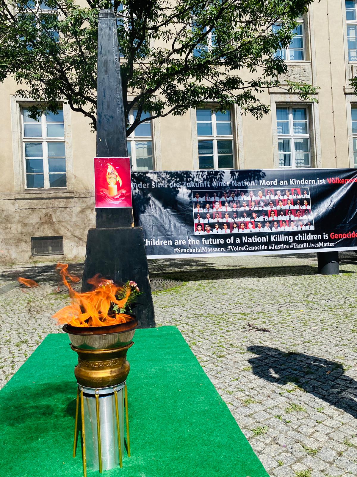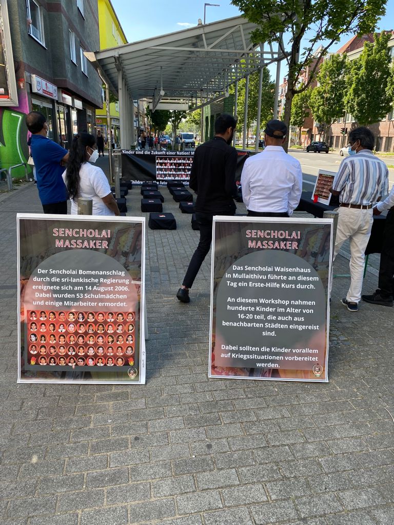 செஞ்சோலை படுகொலையின் 15 ஆம் ஆண்டு நினைவு நாளான இன்றைய தினம் யேர்மனி தலைநகரம் பேர்லினில் கவனயீர்ப்பு நிகழ்வு இடம்பெற்றது.சமநேரத்தில் Bremerhaven , Dortmund நகரங்களிலும் நினைவேந்தல் மற்றும் கவனயீர்ப்பு நிகழ்வும் நடைபெற்றது.இவ் நிகழ்வில் கலந்துகொண்ட மக்கள் கொல்லப்பட்ட செஞ்சோலை சிறுமிகளை நினைவில் ஏந்தி மலர் தூவி சுடர் ஏற்றி வணங்கினர்.