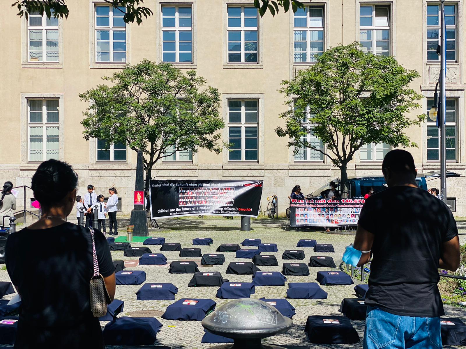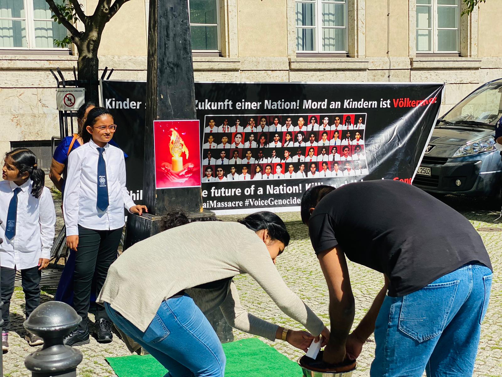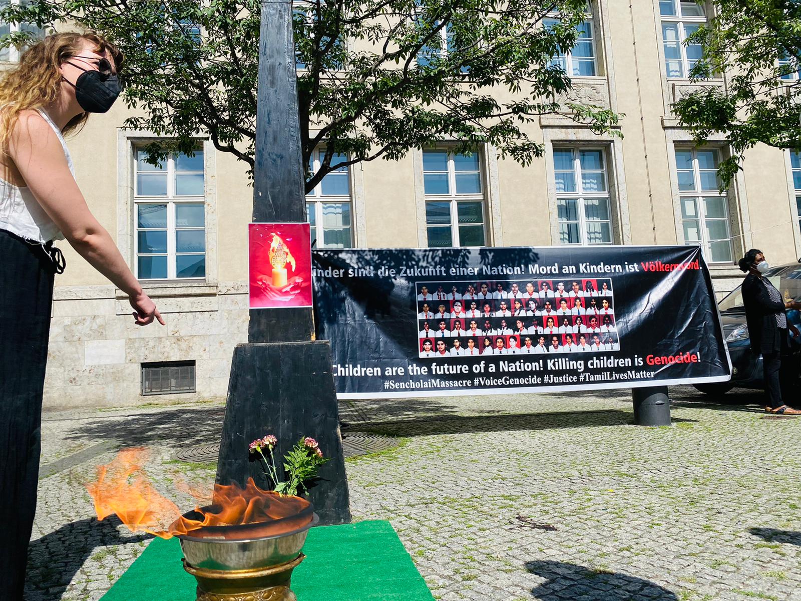 செஞ்சோலை படுகொலையின் 15 ஆம் ஆண்டு நினைவு நாளான இன்றைய தினம் யேர்மனி தலைநகரம் பேர்லினில் கவனயீர்ப்பு நிகழ்வு இடம்பெற்றது.சமநேரத்தில் Bremerhaven , Dortmund நகரங்களிலும் நினைவேந்தல் மற்றும் கவனயீர்ப்பு நிகழ்வும் நடைபெற்றது.இவ் நிகழ்வில் கலந்துகொண்ட மக்கள் கொல்லப்பட்ட செஞ்சோலை சிறுமிகளை நினைவில் ஏந்தி மலர் தூவி சுடர் ஏற்றி வணங்கினர்.