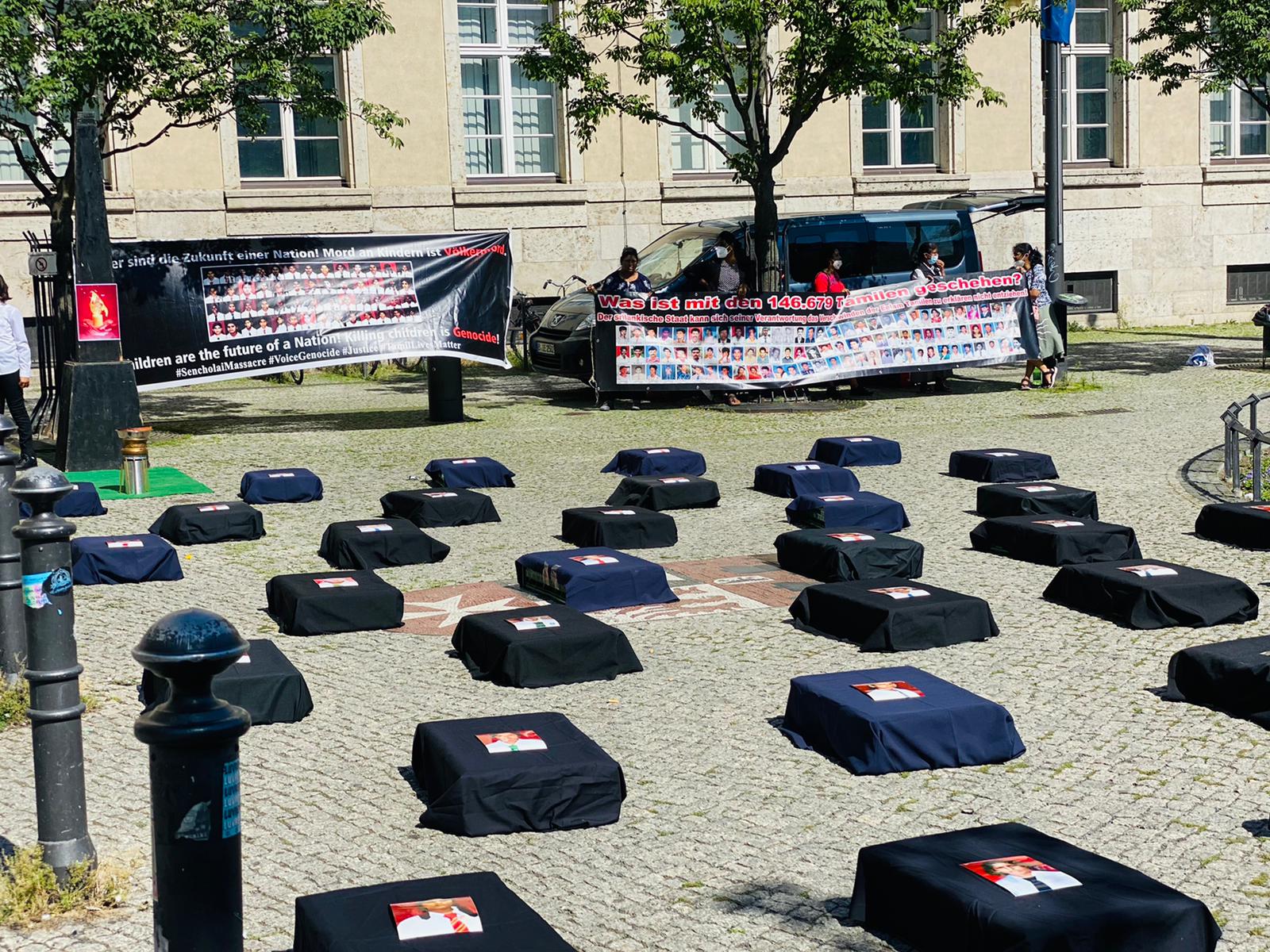 அனைத்து நகரங்களிலும் செஞ்சோலையில் கொல்லப்பட்ட சிறுமிகளை நினைவில் நிறுத்தி மாதிரி கல்லறைகள் வைக்கப்பட்டு , ஈன இரக்கமற்ற