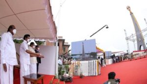 இதையடுத்து 9.48 மணிக்கு முதல்-அமைச்சர் மு.க.ஸ்டாலின் 75-வது ஆண்டு சுதந்திர தின நினைவுத் தூணை திறந்து வைத்தார். அவர் பொத்தானை அமுக்கியதும் நினைவுத் தூணை சுற்றி கட்டப்பட்டிருந்த திரைச் சீலைகள் அனைத்தும் விலகின.