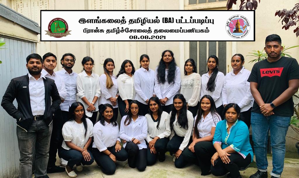 தமிழ்ச்சோலைத் தலைமைப் பணியகமும், தமிழ் இணையக் கல்விக்கழகமும்- தஞ்சாவூர் தமிழ்ப் பல்கலைக் கழகத்துடன் இணைந்து நடத்தும் தமிழியல் (B.A) பாடநெறியில் பட்டம் பெற்று வெளியேறும் மாணவர்களுக்கான சிறப்பு நிகழ்வு , தேர்வின் இறுதி நாளான 08/08/2021 அன்று தமிழ்ச்சோலைத் தலைமைப் பணியகக் கேட்போர் கூடத்தில் நடைபெற்றது. பட்டகர்களுடன் அவர்களின் பெற்றோர்களும் இந் நிகழ்வில் மதிப்பளிக்கப்பட்டனர்.
