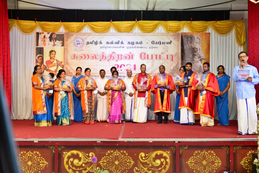 போட்டிகளில் நடுவராக் கடமையாற்றிய கலை ஆசிரியர்கள் மற்றும் கலைஞர்களுக்கும் அரங்கிலே சிறப்பான மதிப்பளிப்பு வழங்கப்பட்டது. போட்டிகளிலே முதல் மூன்று நிலைகளைத் தமதாக்கிய வெற்றியாளர்களுக்கு வெற்றிக்கிண்ணத்தோடு வெற்றிப்பட்டி அணிந்து சான்றிதழும் வழங்கப்பட்டது.