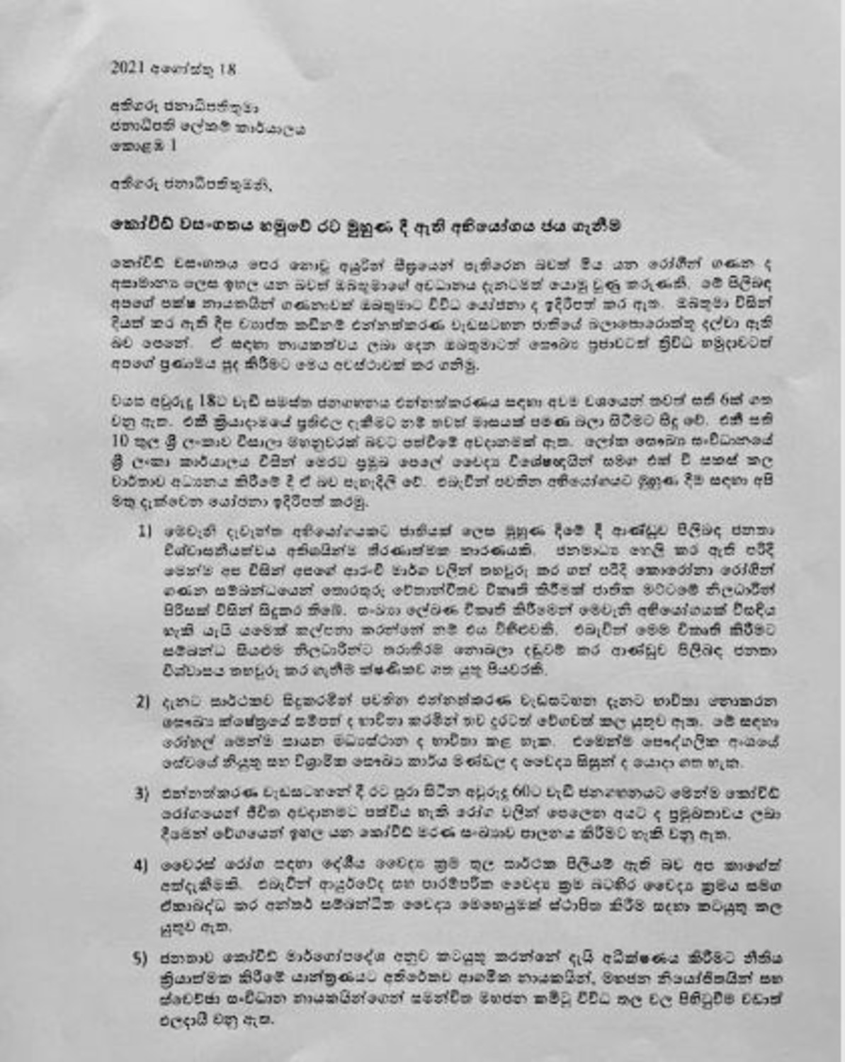 கையெழுத்திட்ட கடிதமொன்றின் ஊடாக அவர்கள் ஜனாதிபதி கோட்டாபய ராஜபக்ஷவிடம் கோரிக்கை முன்வைத்துள்ளனர்.