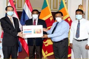 வெளிநாட்டு அமைச்சில் நடைபெற்ற நிகழ்வில் கொழும்பிலுள்ள ரோயல் தாய் தூதரகத்தின் பொறுப்பாளரான தயாடத் கஞ்சனாபிபட்குலிடம் இருந்து வெளிவிவகார செயலாளர் ஜயநாத் கொலம்பகே மருத்துவ உபகரணங்களை நன்கொடையாகப் பெற்றுக் கொண்டார்.