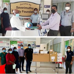 யாழ். ஊர்காவற்றுறை ஆதார வைத்தியசாலை மருத்துவ சேவை வசதிகளை மேம்படுத்தும் நோக்கில் இதுவரை Non Invasive Ventilator மற்றும் பத்து Fingertip Pulseoxymeter களை அன்பளிப்பு செய்த அமெரிக்காவிலுள்ள சவேரிமுத்து குடும்ப அமைப்பினர்(Saverimuthu Family Foundation-USA) மேலும் ஒரு Hamilton C3 ICU ventilator,GE multiparameter monitor, Canon echocardiography probe ஆகிய மருத்துவ உபகரணங்களை அன்பளிப்பாக வழங்கியுள்ளனர்.