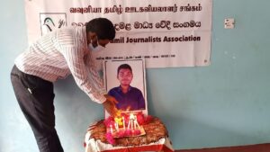 கொரோனா தொற்றினால் உயிரிழந்த யாழ் ஊடகவியலாளர் ஞானப்பிரகாசம் பிரகாசுக்கு வவுனியாவில் இன்று (07) அஞ்சலி செலுத்தப்பட்டது. வவுனியா தமிழ் ஊடகவியலாளர் சங்கத்தின் ஏற்ப்பாட்டில் முன்னெடுக்கப்பட்ட அஞ்சலி நிகழ்வில் அவரது திருவுருவ படத்திற்கு ஒளிதீபம் ஏற்றி மலரஞ்சலி செலுத்தப்பட்டது. அவர் தொடர்பான நினைவுரையினை வவுனியா தமிழ் ஊடகவியலாளர் சங்கத்தின் தலைவர் சு.வரதகுமார் நிகழ்த்தியிருந்தார்.