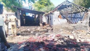 அப்போது எதிர்பாராத விதமாக வெடி விபத்து ஏற்பட்டது. இதில் அருகில் தயாரித்து வைக்கப்பட்டிருந்த வெடிகளுக்கும் பரவி பயங்கர சத்தத்துடன் வெடிக்க தொடங்கியது. வெடி விபத்தில் அங்கிருந்த தொழிலாளர்கள் சிக்கி கூக்குரலிட்டனர். தொடர்ந்து 20 நிமிடத்திற்கு மேலாக வெடி சத்தம் கேட்டுக் கொண்டே இருந்தது. இதனால் அந்த பகுதியில் யாரும் செல்ல முடியவில்லை. வெடி விபத்தில் வீடு தரைமட்டமானது. அருகில் இருந்த 8 வீடுகள் சேதம் அடைந்தன.