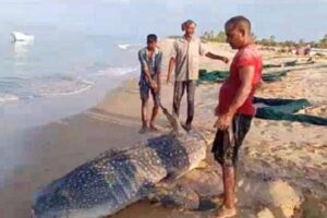 கோமராசி அல்லது புள்ளிச் சுறா என அழைக்கப்படும் குறித்த மீனை வலையில் இருந்து அகற்றி மீனவர்களால் மீண்டும் கடலுக்குள் விடப்பட்டது.