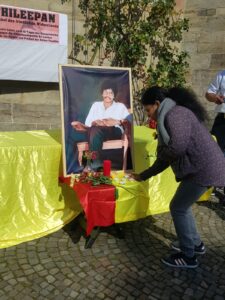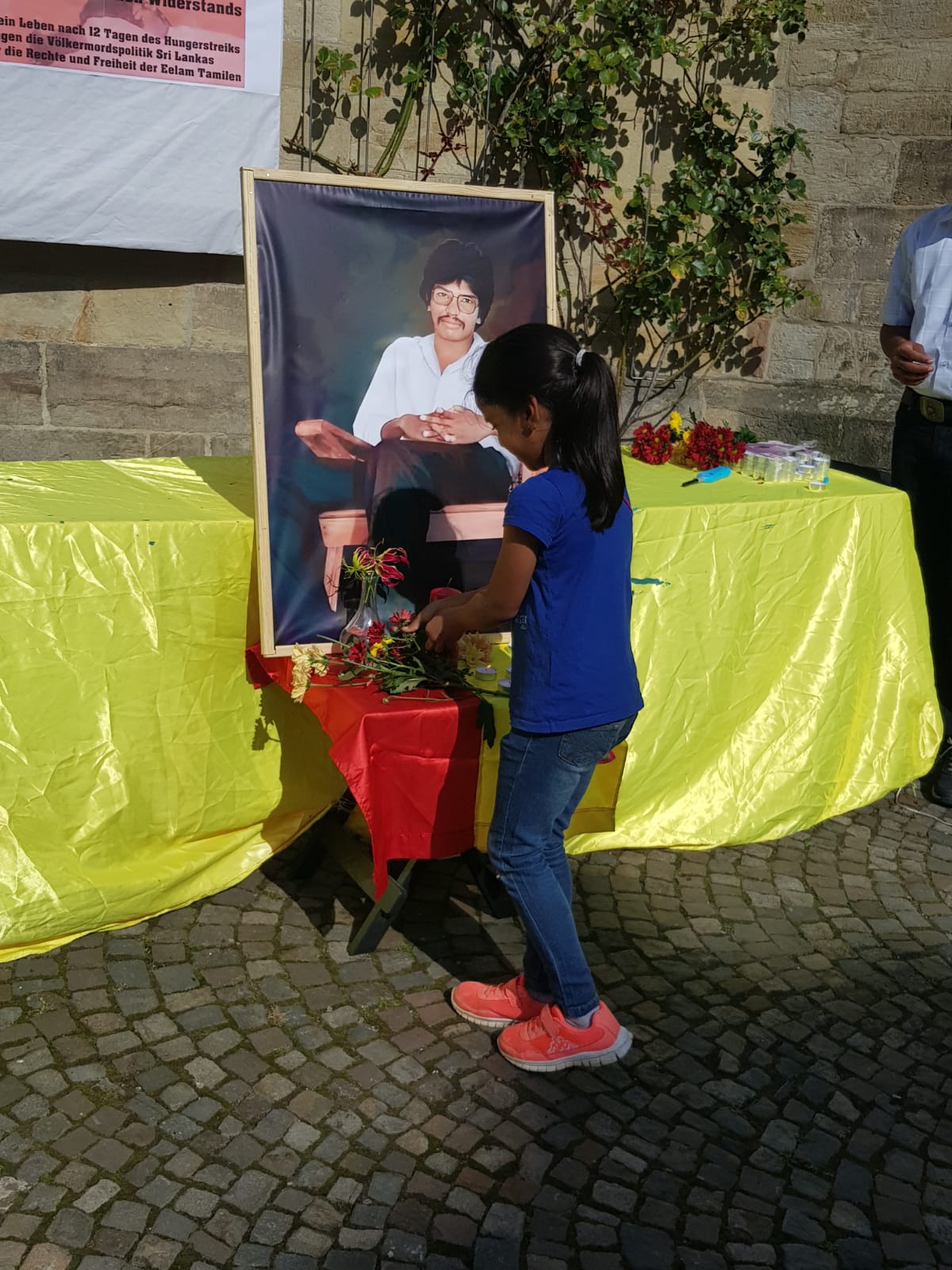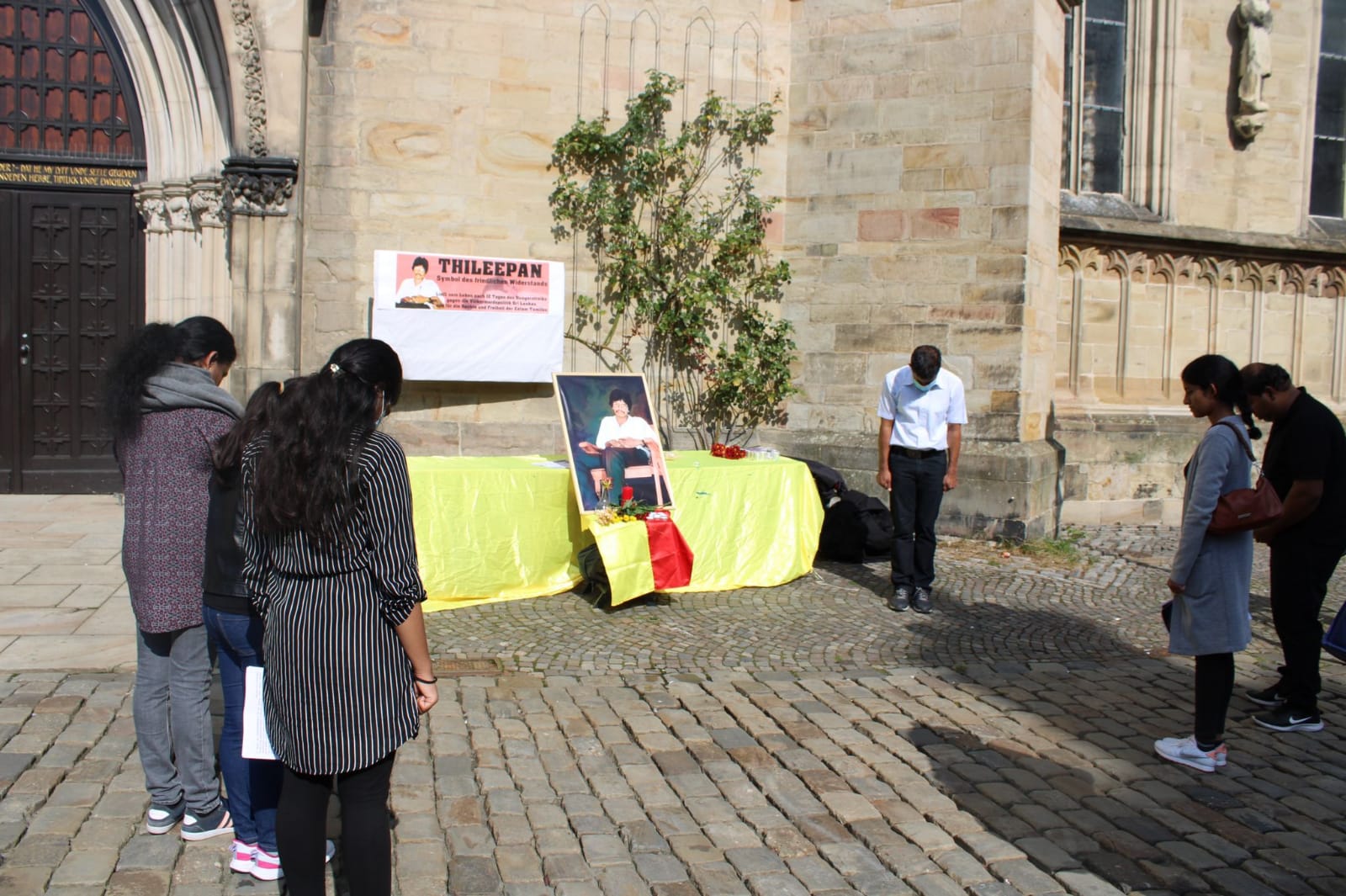 34 ஆண்டுகள் கழித்தும் தனது ஈகத்தின் வாயிலாக இன்றும் எமது போராட்டத்தினை வழி நடாத்தும் லெப். கேணல் திலீபன் அவர்கள் தனது அரசியல் இலக்கில் பெரும் வெற்றி கண்டுள்ளார். அந்த மாபெரும் இலட்சிய வீரனின் கனவினை நிறைவேற்ற நாம் அனைவரும் ஒன்றிணைந்து உறுதியோடு பணியாற்றுவதே அந்த மாவீரனுக்கு நாம் செலுத்தும் உண்மையான வணக்கமாகும். இன்றைய தினம் 12ஆம் நாளான தியாகதீபம் லெப். கேணல் திலீபன் அவர்களது உயிர் பிரிந்து எமது விடுதலைக்கு உரமூட்டிய நாள். இந்நாளில் யேர்மனி மத்திய மாநிலம் டுசில்டோவ் (Düsseldorf) நகரிலும், வடமாநிலம் பிறேமன் (Bremen) நகரிலும் தியாகதீபம் லெப். கேணல் திலீபன் அவர்களது நினைவுவணக்க நிகழ்வும் கவனயீர்ப்பு நிகழ்வும் ஒழுங்கு செய்யப்பட்டுள்ளது.