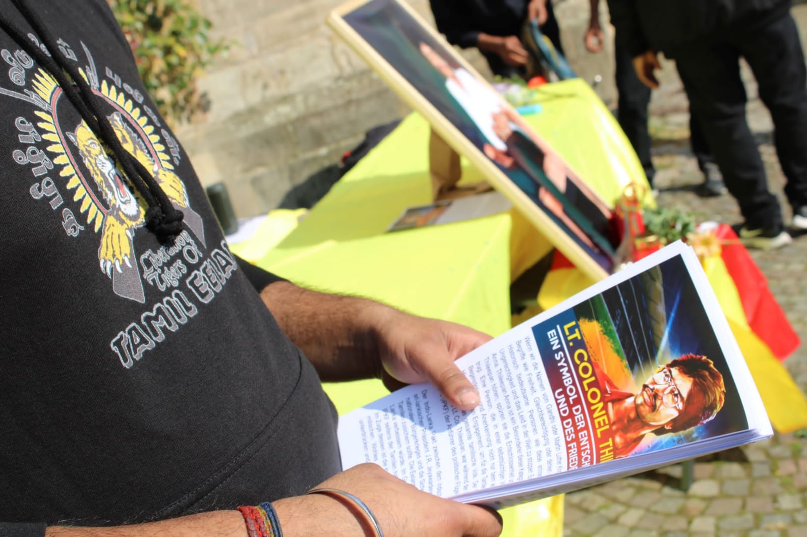 வருகை தந்திருந்த வேற்றின மக்களுக்கு மிகப் பொறுமையுடனும், தெளிவுடனும் எமது தாயக நிலைமைகளை எடுத்துக்கூறியதோடு துண்டுப்பிரசுரங்களையும் இளையவர்கள் வழங்கினார்கள். தான் நேசித்த மக்களின் விடுதலைக்காக களத்தில் நின்று சமராடிய ஒரு புரட்சிகர விடுதலை வீரன் அதே மக்களின் விடுதலைக்காக அறவழியில் சென்று உலகம் கண்டிராத வகையில் மாபெரும் ஈகத்தினை நிலைநாட்டினான். வேற்றின மக்கள் மிகவும் வியப்போடு தியாக தீபம் திலீபன் அவர்களின் ஈகத்தின் ஊடாக எமது போராட்ட நியாயப்பாடுகளை யும் புரிந்துகொள்ள முயல்கிறார்கள் என்பதனை தெளிவாக உணர முடிந்தது.