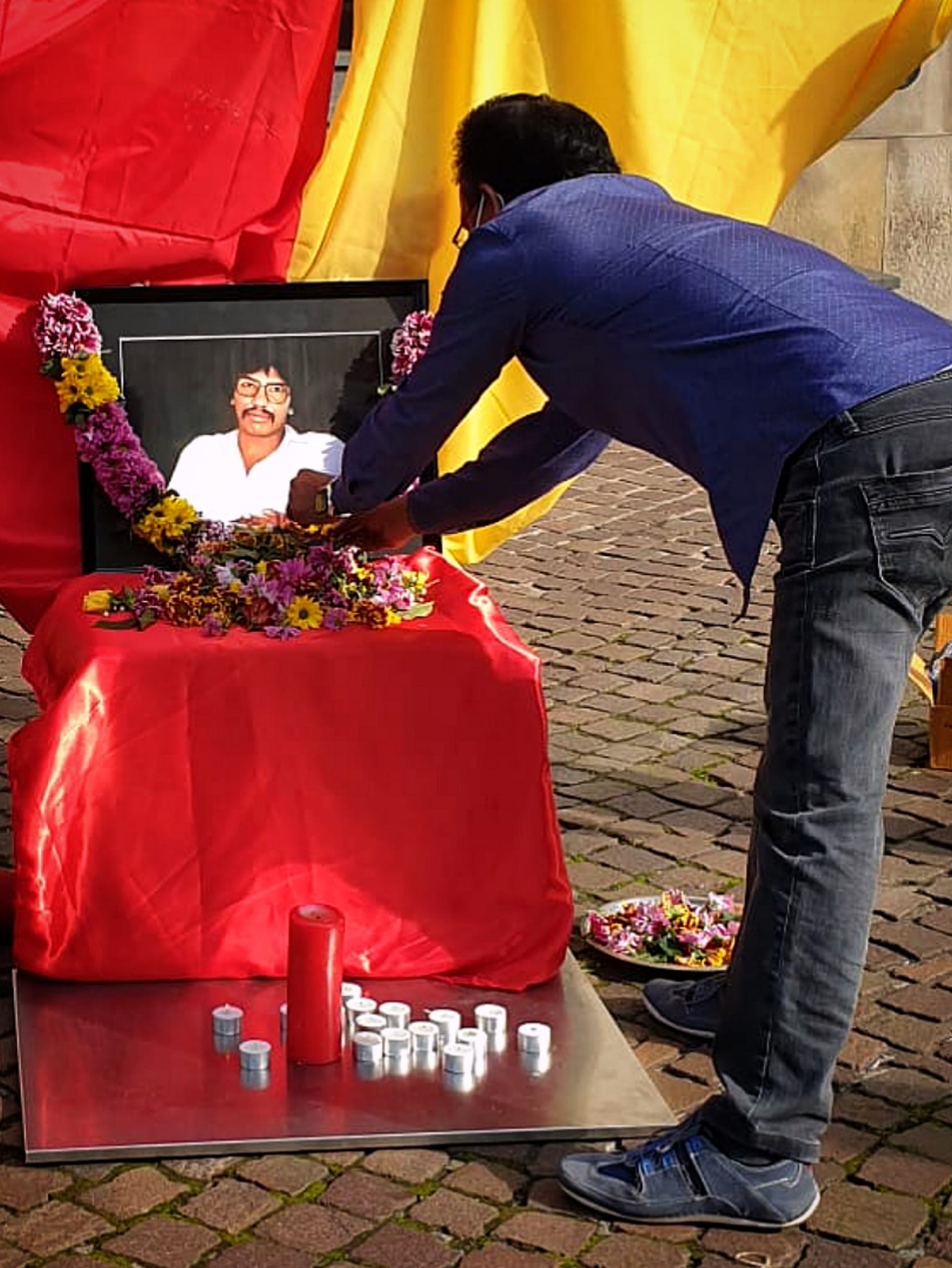 தியாகதீபம் லெப். கேணல் திலீபன் அவர்களது 34 ஆம் ஆண்டு நினைவுநாள் நிகழ்வும் கவனயீர்ப்பு நிகழ்வும் நேற்றையதினம் பிறேமன் (Bremen) நகர மத்தியில் மிகவும் எழுச்சியோடு நடைபெற்றது. தியாகதீபம் திலீபன் அவர்களது உருவப்படத்துக்கு திரு. கஜன் அவர்கள் மலர்மாலை அணிவிக்க ஈகைச்சுடரினை திருமதி கோகுலசிங்கம் கலைவாணி அவர்கள் ஏற்றி வைத்து ஆரம்பிக்கப்பட்டது.