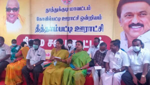 தூத்துக்குடி மாவட்டம் கோவில்பட்டி அருகே உள்ள தீத்தாம்பட்டியில் நடைபெற்ற கிராமசபை கூட்டத்தில் கனிமொழி எம்.பி., அமைச்சர் கீதாஜீவன் ஆகியோர் கலந்து கொண்டனர்.