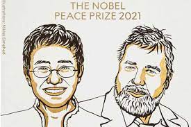 இந்த ஆண்டின் அமைதிக்கான நோபல் பரிசு அமெரிக்க பத்திரிகையாளர் மரியா ரெஸ்ஸா, ரஷிய பத்திரிகையாளர் டிமிட்ரி முராடோவுக்கு பகிர்ந்தளிக்கப்படுகிறது.