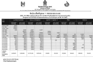இதேவேளை, இலங்கையில் அபிவிருத்தி பணிகளில் ஈடுபட்டுள்ள சீன பிரஜைகள் 2,865 பேருக்கு சைனோபார்ம் தடுப்பூசியின் முதலாவது டோஸ் போடப்பட்டுள்ளதுடன் 2,435 பேருக்கு இரண்டாவது டோஸ் போடப்பட்டுள்ளமை குறிப்பிடத்தக்கது.