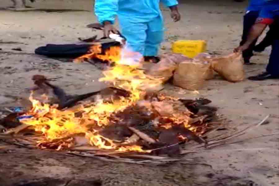 கடற்படையினரால் கைப்பற்றப்பட்ட கேரளா கஞ்சா தொகை, தற்போதைய சுகாதார வழிகாட்டுதல்களைப் பின்பற்றி ஒழுங்குப் பிரிவின் மேற்பார்வையின் கீழ் தீயிட்டு அழிக்கப்பட்டதாக கடற்படை தெரிவித்துள்ளது.