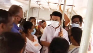 சென்னை கண்ணகி நகரில் அரசு மாநகர பேருந்தில் திடீரென ஏறி முதலமைச்சர் மு.க.ஸ்டாலின் ஆய்வு செய்தார். இதையடுத்து பயணிகளின் குறைகளையும் கேட்டறிந்தார்.