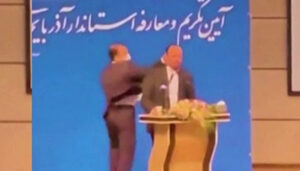ஈரானில் பதவியேற்பு விழாவில் மேடையில் பேசிக்கொண்டிருந்த ஆளுநரை மர்மநபர் ஒருவர் திடீரென அறைந்த வீடியோ இணையத்தில் வைரலாகி வருகிறது.