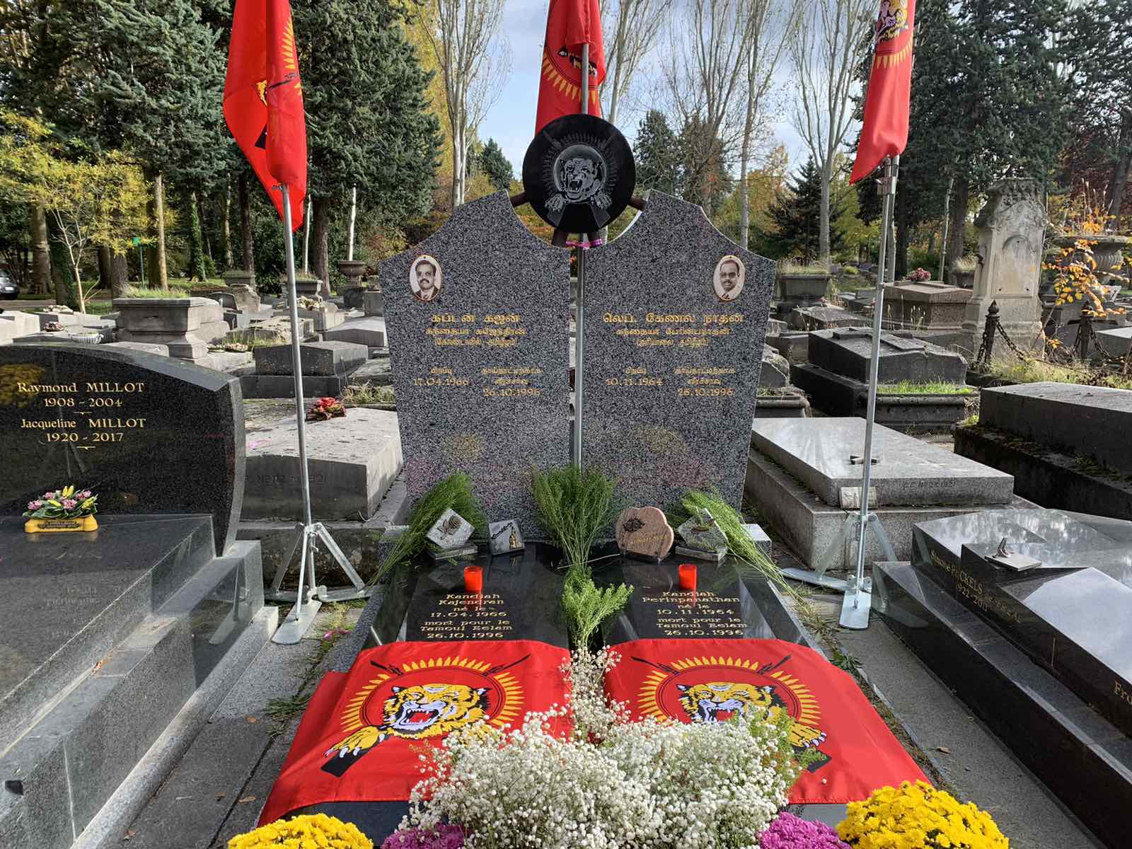 பிரான்ஸ் தலைநகர் பரிசில் வைத்து 26.10.1996 அன்று சிறீலங்கா அரச கைக்கூலிகளின் தாக்குதலில் வீரச்சாவைத் தழுவிக்கொண்ட தமிழீழ விடுதலைப் புலிகளின் அனைத்துலக நிதிப்பொறுப்பாளர் லெப்.கேணல் நாதன் மற்றும் ஊடகப்போராளியும் ஈழமுரசின் நிறுவன ஆசிரியருமான கப்டன் கஜன் ஆகியோரின் 25ஆம் ஆண்டு நினைவேந்தல் நிகழ்வு இன்று (26.10.2021) செவ்வாய்க்கிழமை இம் மாவீரர்களின் கல்லறை அமைந்துள்ள பந்தன் துயிலும் இல்லத்தில் இடம்பெற்றது.