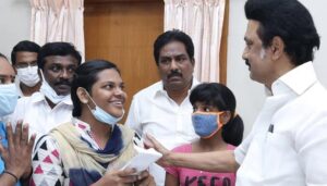 அந்த மாணவிக்கு பட்டபடிப்புக்கான புத்தகங்கள், புத்தகப்பை, கல்வி உபகரணங்களுடன் நிதி உதவிகளை முதல்-அமைச்சர் மு.க.ஸ்டாலின் வழங்கினார்.