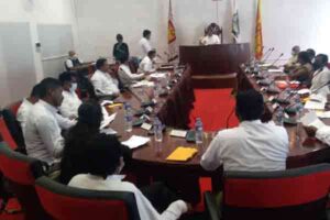 அத்துடன் அவரை மூன்று மாதங்களுக்கு சபை அமர்வுகளிலிருந்து இடைநிறுத்தும் படி அனைத்து உறுப்பினர்களும் தமது கைகளை உயர்த்தி தீர்மானத்தை நிறைவேற்றுமாறு தெரிவித்தனர்.