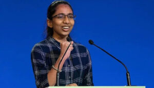இந்த பருவநிலை மாநாட்டில் தமிழகத்தை சேர்ந்த மாணவி வினிஷா உமா சங்கர் பங்கேற்றார். திருவண்ணாமலையை சேர்ந்த 9-ம் வகுப்பு மாணவியான வினிஷா உமாசங்கர் சோலார் மின்சக்தியில் இயங்கும் தெருவோர இஸ்திரி வண்டியை உருவாக்கினார்.