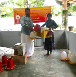 சுவிற்சர்லாந்து ஶ்ரீ கதிர் வேலாயுத சுவாமி அலயமானது புதுக்குடியிருப்பு பிரதேச செயலாளர் பிரிவில் தெரிவு செய்யப்பட்ட 5 குடும்பங்களுக்கு வாழ்வாதார உதவியாக கோழிகளும் அதற்கு தேவையான ஒரு மாதத்திற்கான கோழித்தீவனம், சாப்பாட்டு தட்டு,தண்ணித்தட்டும் ஆகியனவும் வழங்கப்பட்டது.