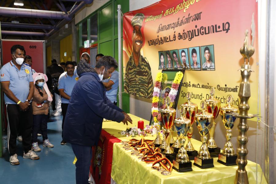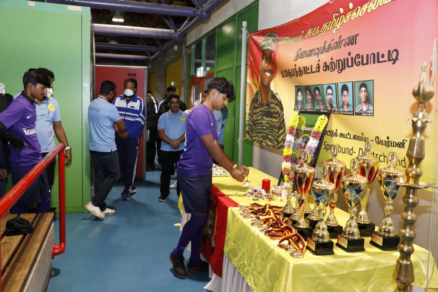 பிரிகேடியர் சுப.தமிழ்ச்செல்வனுக்கும் அவருடன் வீரச்சாவைத் தழுவிக்கொண்ட ஏனைய மாவீர்களுக்கும் விளக்கேற்றி மலர் தூவி விளையாட்டுப் போட்டி ஆரம்பமாகியது.