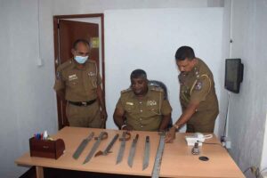 சந்தேகநபர்களிடமிருந்து 06 வாள்கள் மற்றும் கை கோடாளி ஒன்று கைப்பற்றப்பட்டுள்ளன.