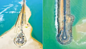 ராமேசுவரத்தில் இருந்து 25 கிலோமீட்டர் தொலைவில் உள்ளது, தனுஷ்கோடி அரிச்சல்முனை கடற்கரை. அரிச்சல் முனைவரையிலும் சாலை அமைக்கப்பட்ட பின்னர் தனுஷ்கோடிக்கு சுற்றுலா பயணிகளின் வருகை அதிகரித்து உள்ளது. கடந்த 2 ஆண்டுகளுக்கு முன்பு வரையிலும் தனுஷ்கோடி அரிச்சல்முனை எல்லையில் உள்ள சாலை வளைவை சுற்றி சுமார் 2 கிலோமீட்டர் தூர பரப்பளவில் வடக்கு மற்றும் தெற்கு கடற்கரை பகுதி விசாலமாக இருந்தது.