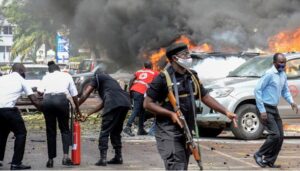 இந்நிலையில், இந்திய வீரர்கள் தங்கி இருந்த ஓட்டல் அருகே நேற்று குண்டுவெடிப்பு நடைபெற்றது. வெடிகுண்டு நிரப்பிய காரை ஓட்டல் அருகே நிறுத்திய பயங்கரவாதி வெடிகுண்டை திடீரென வெடிக்கச் செய்தான். இந்த வெடிகுண்டு தாக்குதல் உகாண்டாவின் தலைமை காவல் நிலையம் அருகே நிகழ்த்தப்பட்டுள்ளது.