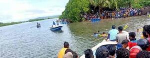 சம்பவம் நேரத்தில் குறித்த படகில் 17 பாடசாலை மாணவர்கள் உள்ளிட்ட 23 பேர் பயணித்துள்ளதுடன் நீரில் மூழ்கிய சிலர் நீந்தி கரையைச் சேர்ந்துள்ளனர் .