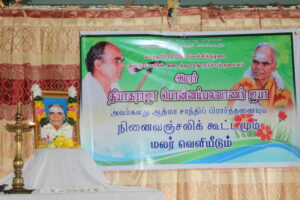 பொன்னம்பலவாணர் ஐயாவின் நினைவு மலரினை பொன்னாலை ஸ்ரீ வரதராஜப்பெருமாள் தேவஸ்தானபிரதம குருவான சோமஸ்கந்த குருக்கள் வெளியீட்டு வைக்க வட்டு இந்துக் கல்லூரி ஓய்வு நிலை அதிபர் சி. சிவகணேசசுந்தரன் பெற்றுக் கொண்டார்.