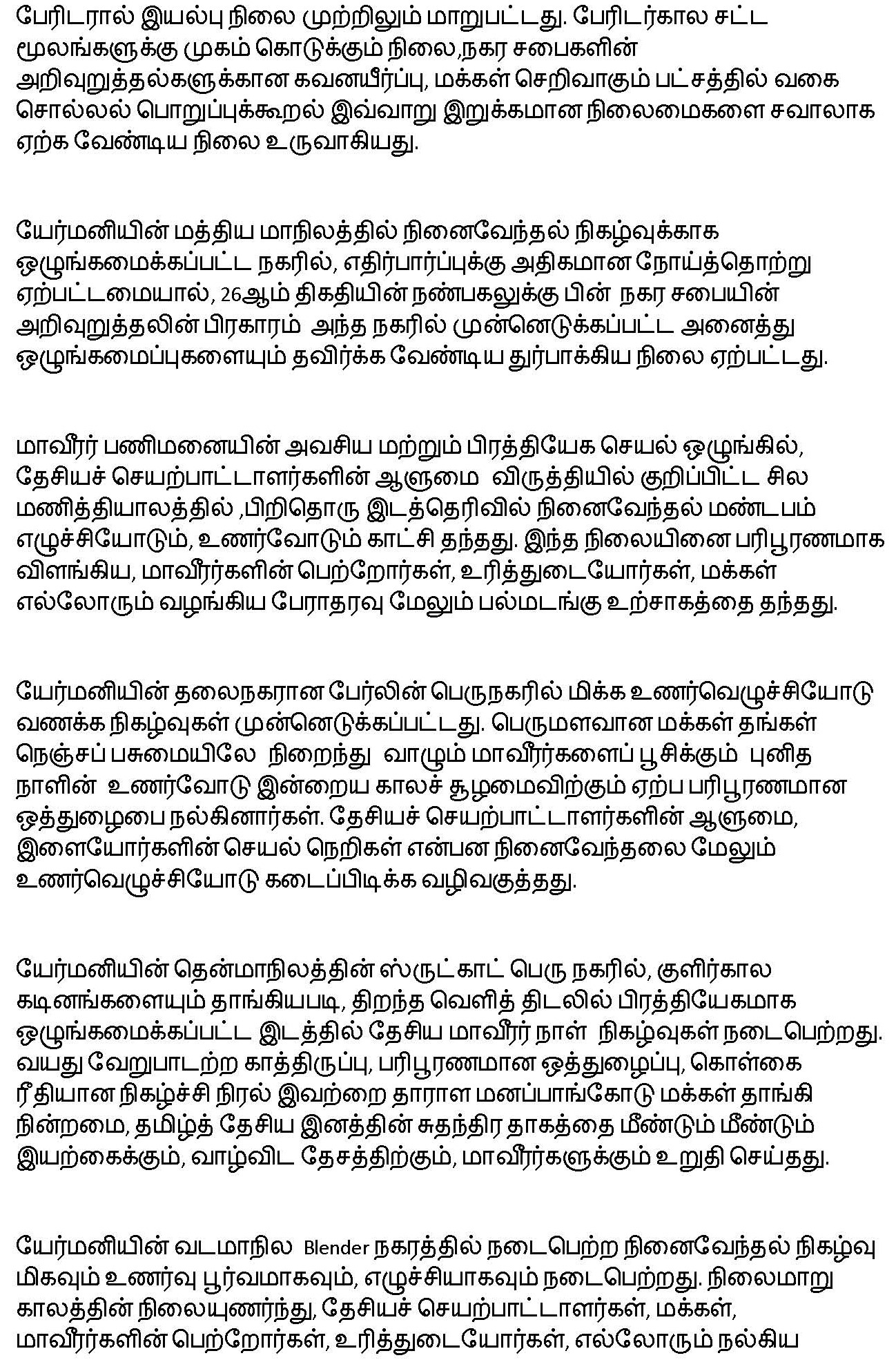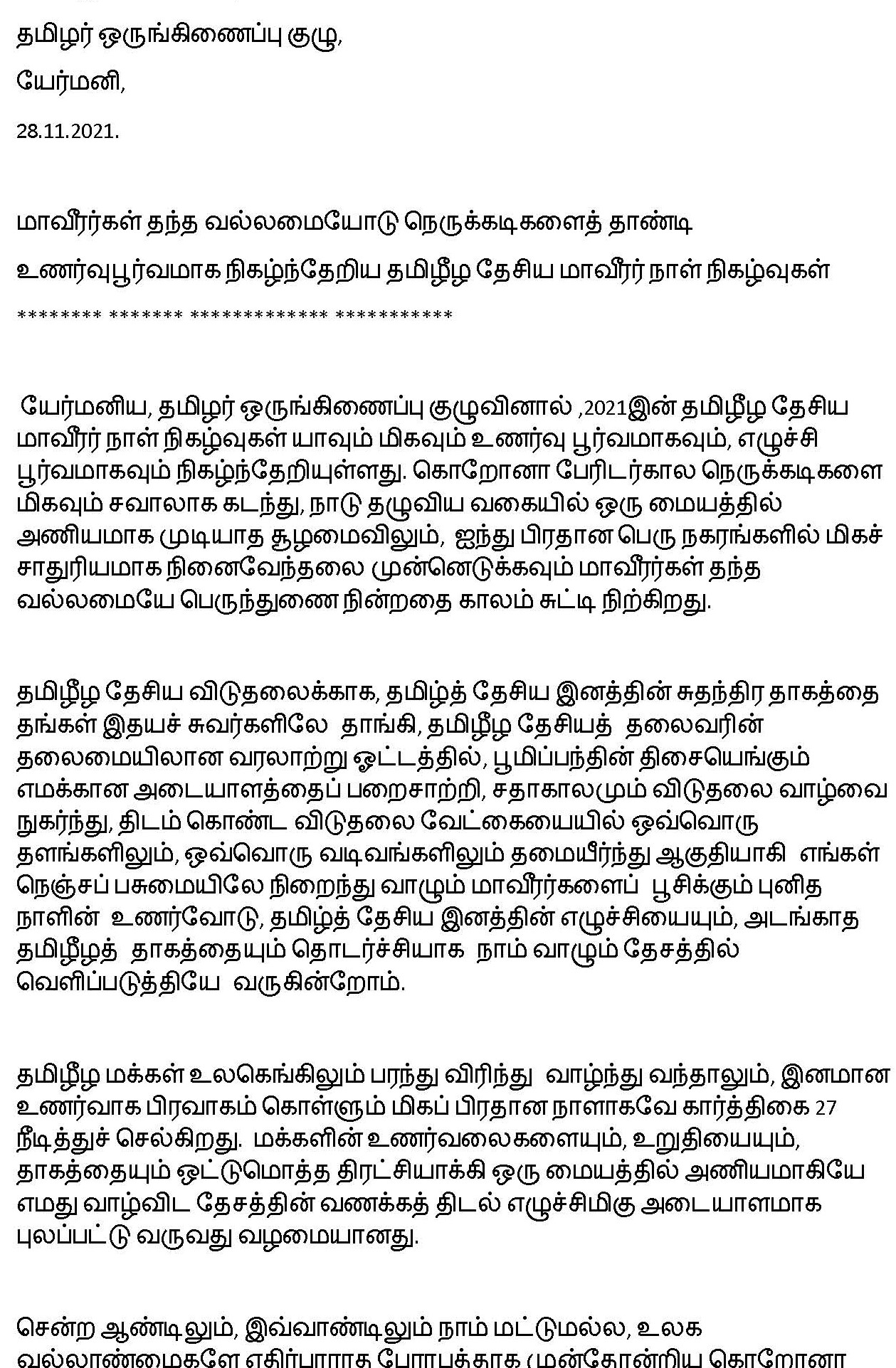 புலம்பெயர் தேசங்களில் முக்கிய செய்திகள் மாவீரர்கள் தந்த வல்லமையோடு நெருக்கடிகளைத் தாண்டி உணர்வுபூர்வமாக நிகழ்ந்தேறிய தமிழீழத் தேசிய மாவீரர் நாள் நிகழ்வுகள். Posted on November 30, 2021 at November 30, 2021 by சமர்வீரன் 1200 0 மாவீரர்கள் தந்த வல்லமையோடு நெருக்கடிகளைத் தாண்டி உணர்வுபூர்வமாக நிகழ்ந்தேறிய தமிழீழத் தேசிய மாவீரர் நாள் நிகழ்வுகள்.