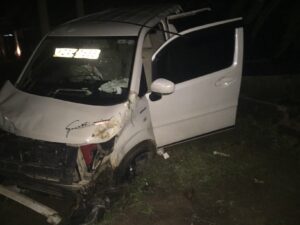 வவுனியா, வைரவ புளியங்குளம் பகுதியில் உள்ள மதுபான விருந்தகம் ஒன்றின் முன்னால் நிறுத்தி வைக்கப்பட்டிருந்த கார் ஒன்று அங்கிருந்து வேகமாக புகையிரத வீதி ஊடாக குருமன்காடு நோக்கி சென்ற போது, சாரதியின் கட்டுப்பாட்டை இழந்த கார் வீதியோரத்தில் நிறுத்தி வைக்கப்பட்டிருந்த முச்சக்கர வண்டி ஒன்றுடன் மோதி தடம் புரண்டது.