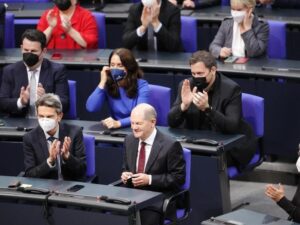 நேற்று (08.12.2021) நடைபெற்ற நாடளுமன்றின் ஆட்சித்தலைவருக்கான(Kanzeler) வாக்கெடுப்பில் 369வாக்குகள் எதிர்பார்க்கப்பட்ட நிலையில் மறைமுக வாக்கெடுப்பிற் 395 வாக்குகள் ஆதரவாகவும் 303வாக்குள் எதிராகவும் வாக்களிக்கப்பட்டதை அடுத்து ஒலாவ் சொள்ஸ்(Olaf Scholz) அவர்கள் 20ஆவது நாடாளுமன்றின் ஆட்சித் தலைவராகத் தேர்ந்தெடுக்கப்பட்டு, அவருக்கான நியமனச் சான்றிதழை அரசுத்தலைவரான(BundesPräsident) கலாநிதி பிராங் வால்டர் ஸ்ரைன்மையர் அவர்களால் வழங்கப்பட்ட அதேவேளை அமைச்சர்களுக்கான நியமனச் சான்றிதழ்களும் வழங்கப்படதைத் தொடர்ந்து, நாடாளுமன்றிலே சபாநாயகரின் முன்னிலையில் உறுதியுரையேற்பைத் தொடர்ந்து முறைப்படி ஆட்சித்தலைவரானார். அதேவேளை, 15 அமைச்சர்களின் உறுதியுரையேற்பையடுத்து புதிய அரசு யேர்மனியின் ஆட்சிப்பொறுப்பை ஏற்றுள்ளது.