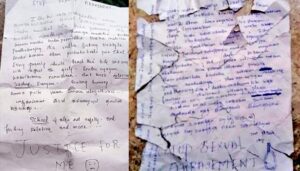 இது தவிர 3-வதாகவும் மாணவி கடிதம் ஒன்றை எழுதி உள்ளார். அந்த கடிதத்தின் கடைசியில் உடலை மட்டும் பார்த்து பழகுபவர்கள் ஆண்மைக்கு தகுதி இல்லாதவர்கள். மோசமான உலகத்தில் பிறந்து விட்டேன். மறுபடியும் வேறு உலகத்துக்கு செல்கிறேன். ‘‘ஸ்டாப் செக்சுவல் அராஸ் மெண்ட். ஜஸ்டிஸ் பார் மீ’’ என குறிப்பிட்டுள்ளார். தூக்கு கயிறு படம் ஒன்றையும் கடிதத்தில் அவர் வரைந்துள்ளார்.