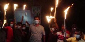 எரிபொருள் விலையேற்றத்திற்கு எதிர்ப்பு தெரிவித்து ஐக்கிய மக்கள் சக்தி அங்கத்தவர்கள் கையில் தீப்பந்தம் ஏந்தி ஆர்ப்பாட்டம் மேற்கொண்டனர்.