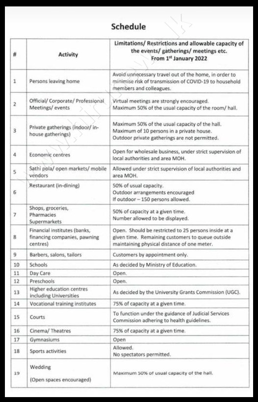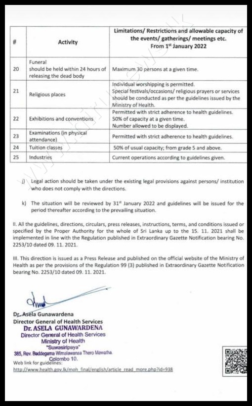 சுகாதார சேவைகள் பணிப்பாளர் நாயகத்தினால் இன்று(01) முதல் எதிர்வரும் 31 ஆம் திகதி வரை அமுலாகும் வகையிலான புதிய சுகாதார வழிகாட்டல் வெளியிடப்பட்டுள்ளது.