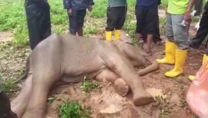 முல்லைத்தீவு குமுளமுனை பிரதேசத்திலுள்ள பண்ணை ஒன்றில் ஹூக்கா பட்டாசில் சிக்கி ஆபத்தான நிலையில் காணப்பட்ட காட்டு யானைக்குட்டி ஒன்றுக்கு சிகிச்சை அளிக்கப்பட்டதாக வடமாகாண வனஜீவராசிகள் அலுவலகம் தெரிவித்துள்ளது.