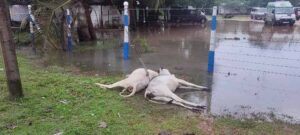 கடும் மழை பெய்து கொண்டிருந்த போது சம்பவம் நடந்த இடத்தில் அமைந்திருந்த மின் கம்பத்தில் இருந்து மின்சாரம் கசிந்ததன் காரணமாக மின்சாரம் தாக்கியதில் இந்த மாடுகள் உயிரிழந்துள்ளன.