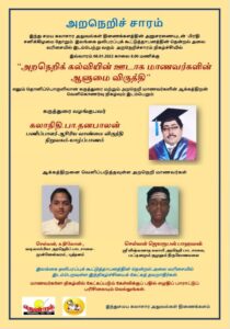 தமிழீழம் அறநெறிக் கல்வியின் கல்வியின் ஊடாக மாணவர்களின் ஆளுமை விருத்தி Posted on January 7, 2022 at 18:07 by தென்னவள் 382 0 அறநெறிக் கல்வியின் கல்வியின் ஊடாக மாணவர்களின் ஆளுமை விருத்தி
