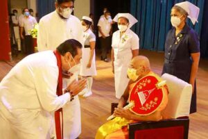 இலங்கை வரலாற்றின் பல்வேறு சந்தர்ப்பங்களில் தேசிய பிரச்சினைகள் மற்றும் அனர்த்தங்களின் மத்தியில் மஹாசங்கத்தினர் முன்னின்று செயற்பட்டமைக்கு வரலாறு சாட்சியளிக்கும். இந்நாட்டின் தேசிய பிரச்சினைகளின் போது முன்னின்று பெருந்தன்மையாக உழைத்த ஒருவராக நமது தேரர் வரலாற்றில் இடம்பிடித்துள்ளார். அந்த தேசிய பிரச்சினைகளின் மத்தியில் அவர் தயக்கமின்றி செயற்பட்டார். அதேபோன்று தொழில் உரிமைக்காகவும் அவர் முன்னின்று செயற்பட்டார். அது இறுதியில் பாரிய விளைவுகளை ஏற்படுத்தும் தொழிற்சங்க நடவடிக்கையாக மாற்றுவதற்கும், நேரடி கருத்துக்கள் ஊடாக போராடி வெற்றியுடன் நிறைவுசெய்வது தொடர்பில் நம் ஒவ்வொருவருக்கும் பெருமையடைய வேண்டும். விசேடமாக தாதியர் சேவையின் முன்னேற்றம் உள்ளிட்ட இந்நாட்டின் சுகாதார துறைக்கு அவரிடமிருந்து பெறப்பட்ட ஆலோசனைகள் மிகவும் முக்கியமானதுடன், அது சாதகமான சுகாதார சேவைக்கு முக்கியமானதாக விளங்குகின்றது என அமைச்சர் கெஹெலிய ரம்புக்வெல இதன்போது குறிப்பிட்டார்.