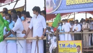 தமிழகம் முழுவதும் மாட்டுப் பொங்கல் இன்று சிறப்பாக கொண்டாடப்பட்டு வருகிறது. இதையொட்டி திருச்சி மாவட்டம் திருவெறும்பூர் அருகே உள்ள பெரியசூரியூர் கிராமத்தில் மாட்டுப் பொங்கலை முன்னிட்டு ஜல்லிக்கட்டு போட்டி இன்று தொடங்கியது. பள்ளிக் கல்வித்துறை அமைச்சர் அன்பில் மகேஷ் பொய்யாமொழி ஜல்லிக்கட்டு போட்டியை தொடங்கி வைத்தார்.