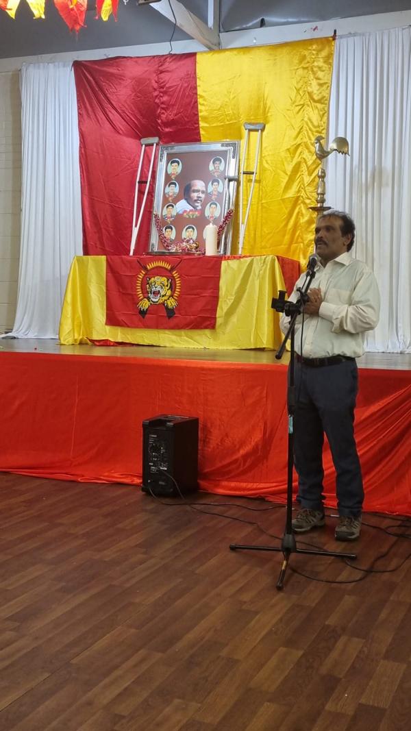 இன்றைய நிகழ்வின் பொதுச்சுடரினை திருமதி வியஜராணி அவர்கள் ஏற்றிவைத்தார்கள். தமிழீழ தேசியக்கொடியினை தமிழர் ஒருங்கிணைப்பு குழுவின் மாவீரர் பணிமனைப்பொறுப்பாளர் திரு. அசோகன் அவர்கள் ஏற்றிவைத்தார்கள். ஈகைச்சுடரினை தமிழர் ஒருங்கிணைப்பு குழுவின் நீண்டகால செயற்பாட்டாளர் திரு. கோவிந்தன் பத்மன் அவர்கள் ஏற்றிவைத்ததை தொடர்ந்து அகவணக்கம் இடம்பெற்றது. தமிழர் ஒருங்கிணைப்பு குழுவின் வடமேற்கு பிராந்திய துணைப் பொறுப்பாளர் திரு குகன் அவர்கள் திருவுருவப்படத்திற்க்கான மலர் மாலையினை அணிவித்தார்.