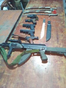 ஓய்வு பெற்ற வைத்தியரான அவரது வீட்டில் சோதனைக்கு உட்படுத்திய போது, ஆயுதங்கள் மற்றும் கூரான ஆயுதங்கள், கைத்துப்பாக்கிகள் உள்ளிட்ட ஆயுதங்கள் கைப்பற்றப்பட்டுள்ளன