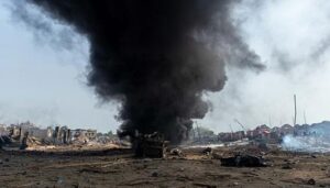 இந்த கோர வெடி விபத்தில் லாரி சென்றுக்கொண்டிருந்த சந்தைப்பகுதி முழுவதும் சர்வ நாசமானது. சக்திவாய்ந்த வெடிமருந்துகள் வெடித்ததில் அருகில் இருந்த பகுதிகள் அனைத்தும் தரைமட்டமாகின.