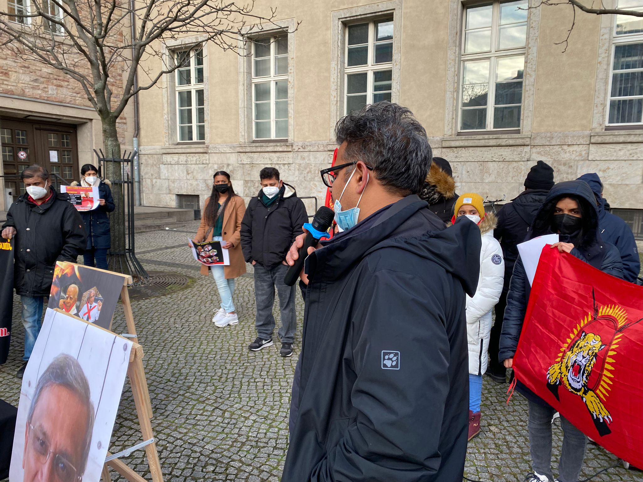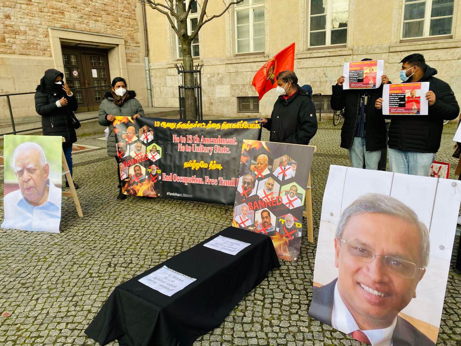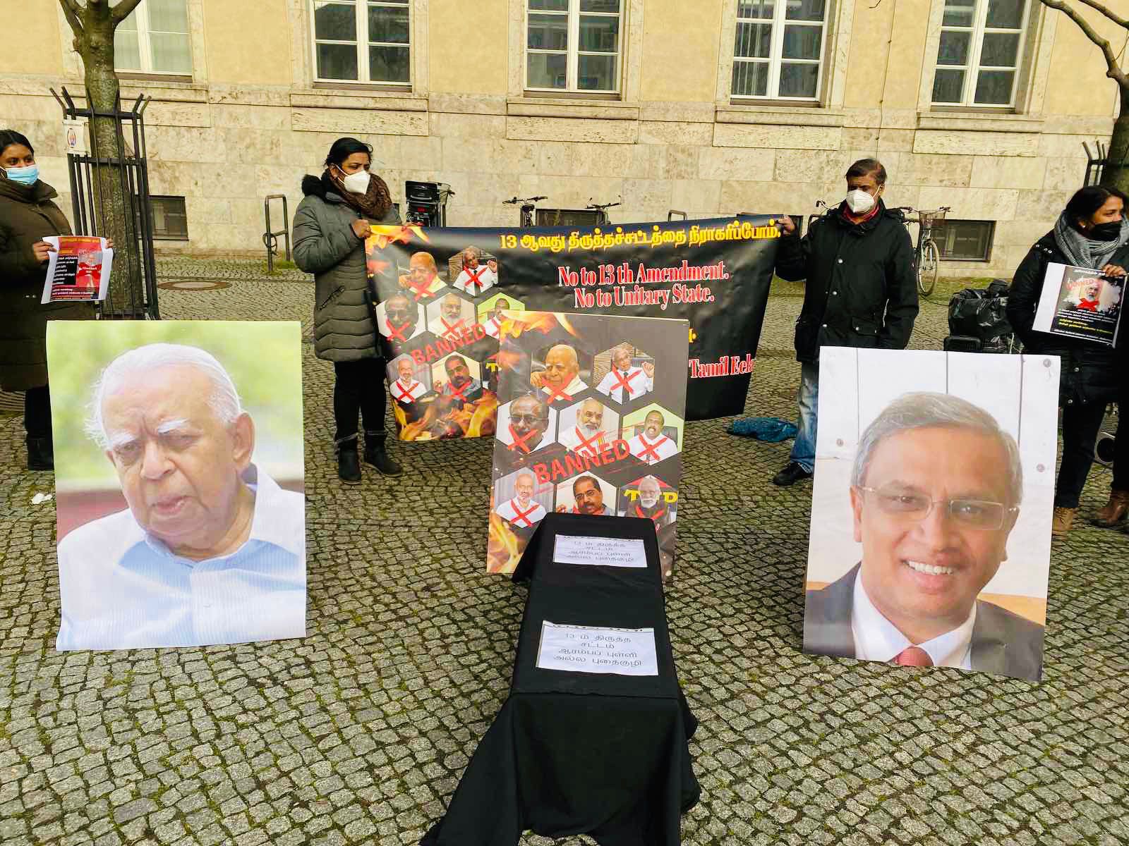 அந்த வகையில் இன்றைய நாளில் யேர்மன் தலைநகரில் 13ம் திருத்தத்தை அரசியற் தீர்வாக காட்டும் முயற்சிக்கு எதிராக கடும் குளிருக்கும் மத்தியிலும் இன உணர்வுடன் ஒன்றுகூடிய மக்கள் தமது கண்டணத்தை தெரிவித்தார்கள். தாயகத்தில் இருந்து மதிப்பிற்குரிய பாராளுமன்ற உறுப்பினரும் தமிழ்த் தேசிய மக்களின் தலைவரும் திரு கயேந்திரகுமார் பொன்னம்பலம் அவர்கள் இணையவழி ஊடாக கலந்துகொண்டு 13 ஆம் திருத்தமும் அதன் பின்னுள்ள கூட்டுச்சதியையும் மிகவும் தெளிவாக எடுத்துரைத்தார்.