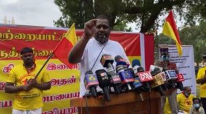 13ஐ எதிர்த்துச் சமஷ்டியைக் கோரி தமிழரின் புரட்சி போராட்டத்தில் உரையாற்றிய தமிழ்த்தேசிய மக்கள் முன்னணியின் தலைவர் கஜேந்திரகுமார் பொன்னம்பலம்…..