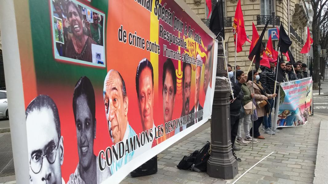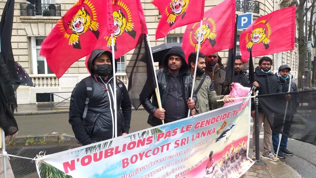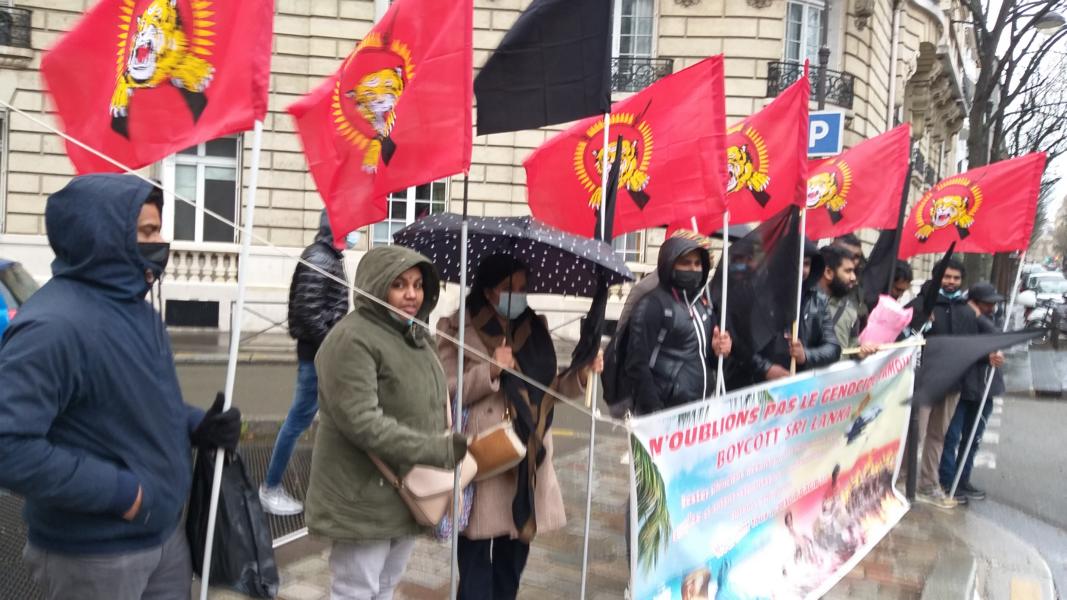 பிரான்சில் “தமிழினத்தின் கரிநாள் சிறிலங்கா பேரினவாத அரசின் சுதந்திர நாள்” கவனயீர்ப்புப் போராட்டம் இன்று (04.02.2022) வெள்ளிக்கிழமை பிற்பகல் 15.00 மணி முதல் 17.00 மணிவரை சிறிலங்கா தூதரகத்துக்கு முன்பாக இடம்பெற்றது. பிரான்சு தமிழர் ஒருங்கிணைப்புக் குழு , பிரான்சு தமிழீழ மக்கள் பேரவை ஆகியவற்றின் ஏற்பாட்டில் இடம்பெற்ற இந்நிகழ்வில் அகவணக்கத்தோடு ஆரம்பமானது. தமிழ்மொழி, பிரெஞ்சு மொழி மற்றும் ஆங்கில மொழிகளில் பிரான்சு தமிழீழ மக்கள் பேரவைப் பொறுப்பாளர் திரு.திருச்சோதி அவர்கள் உரை நிகழ்த்தியிருந்தார் .